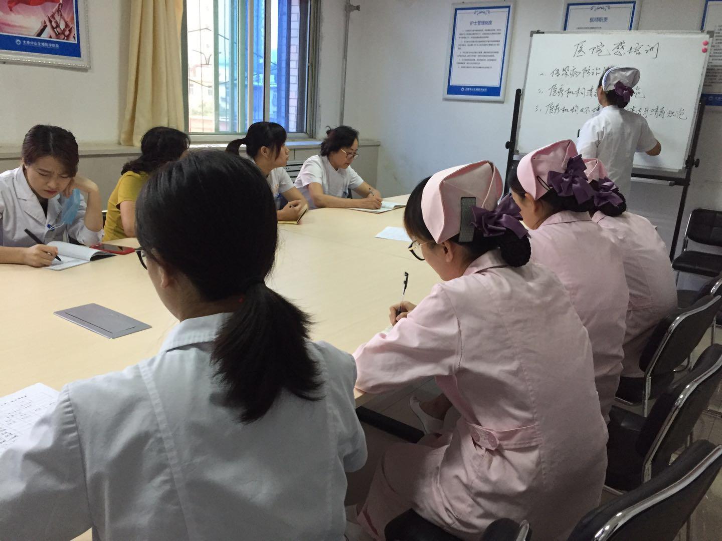 9月21日下午5点,太原中山医院五楼会议室开展“医院院感知识专题培训”会。培训会由我院护理部主任段三梅主讲,部分医护人员、保洁人员参加培训。