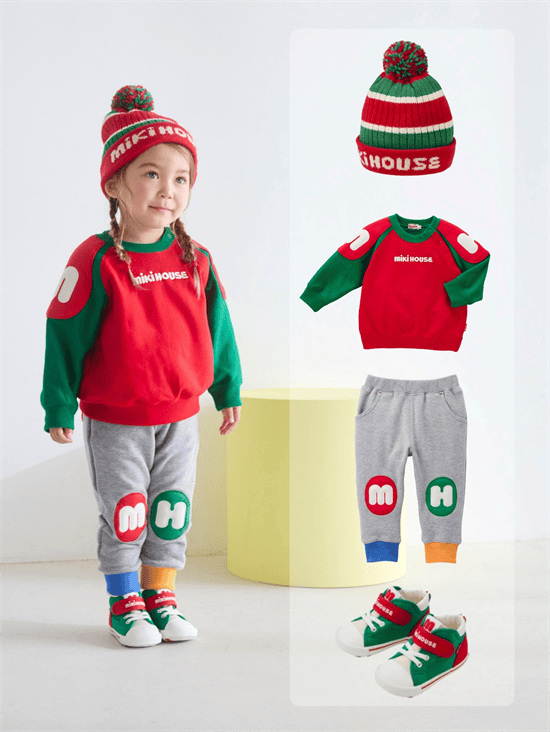 红配绿是时尚重灾区绝对是一种来自大人的刻板印象。但在孩子的童话世界里,红配绿可是最佳CP!MIKI HOUSE经典LOGO系列用饱和度满满的红色点亮冬日,再搭配立体小徽章与充满童趣的标志,把圣诞的节日氛围感都穿在身上。