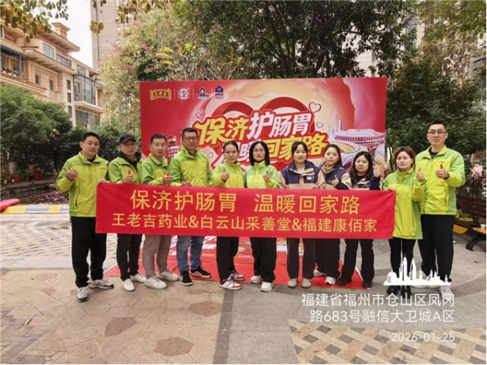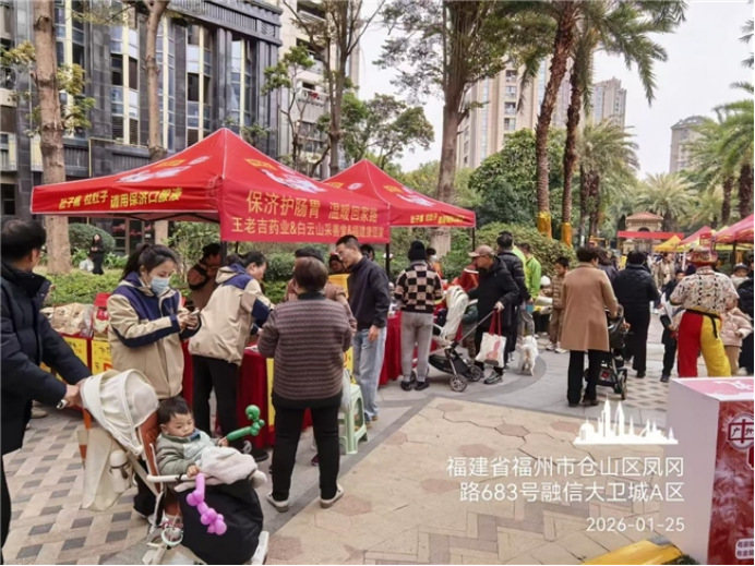 新春返乡季,安康伴我行。为守护群众返乡途中及居家团圆时的肠胃健康,传递新春暖意与公益温情,王老吉药业福建办(药品&食品)携手白云山采善堂、福建康佰家、永惠医药连锁,正式启动公益社区行动与路演活动,以多元服务与趣味互动,为市民送上一场兼具健康守护与年味氛围的新春盛宴。