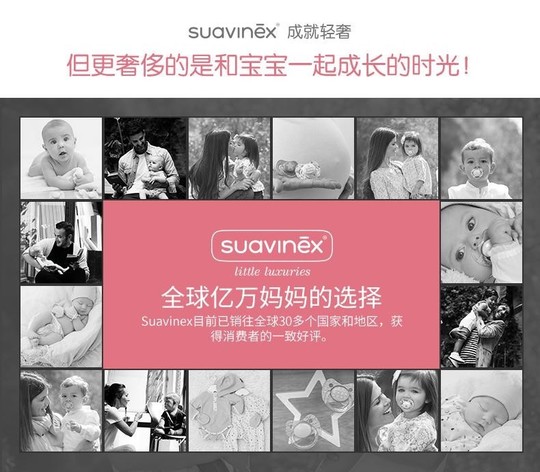 作为欧盟标准化委员会(CEN)成员之一的SUAVINEX,不仅仅提供奶瓶、安抚奶嘴以及相关配件,而且还提供母乳喂养,杀菌清洁,长牙期大脑发育,婴儿卫生,婴儿和儿童餐具,织物用品,以及孕妈和婴儿的洗护用品,致力于为全球宝宝提供更简单和舒适的生活。
