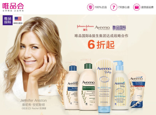 强生旗下Aveeno艾惟诺品牌官方入驻唯品国际 惊喜特卖专场同步放送签约福利