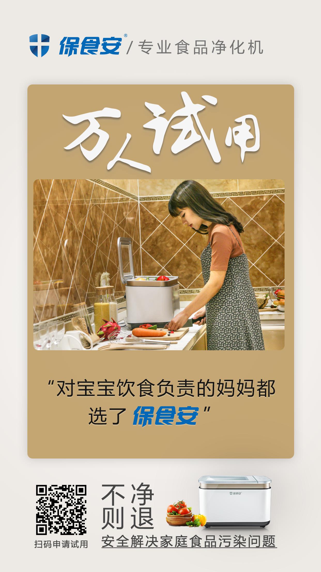 近年来,在我国食品产业保持稳定高速发展,市场上供应的食品种类显著增加的同时,屡屡曝光的食品安全问题成了消费者关注的焦点。农药残留、致病菌、超标激素等问题无时无刻不在威胁着消费者的餐桌安全。伴随着更多食品安全问题的出现,“健康”逐渐成为消费者挑选美食时的首选要素。日前,食品净化机高端品牌保食安为了满足广大消费者健康饮食的需要,推出了“保食安万人试用”活动,消费者通过网上申请即可免费试用保食安食品净化机。