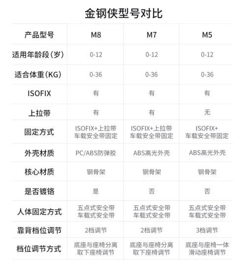 Micolor安全座椅分为金钢侠M8、金钢侠M7和金钢侠M5。那到底有何区别呢?今天我们一起来了解一下金钢侠系列的区别吧。