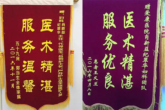 患者赠与纪翠华主任及其科室的感谢锦旗